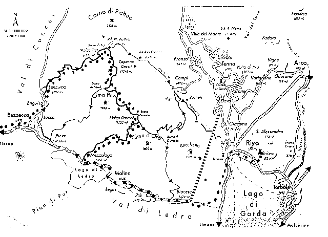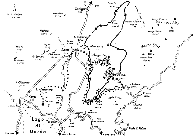 do údolí řeky Sarca a k jezeru Garda) až do vesnice Bolognano. Odtud po stejné trase jako ráno