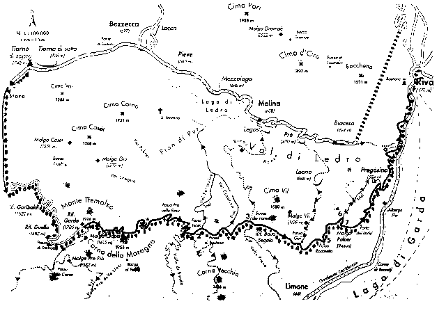 V srpnu roku 1997 jsem se zúčastnil jako externí průvodce CK dvou zájezdů do Dolomit a k jezeru Lago di Garda. Přestože byly o těchto lokalitách v českých časopisech (např. Peloton, Cykloturista) již dříve různé informace publikovány, domnívám se, že jiný úhel pohledu a popis projetých tras zaměřený na obtížnost, povrch, převýšení, dobu jízdy a ujetou vzdálenost, může zájemcům o tuto oblast přinést nové podněty pro plánování jejich vlastních akcí. Protože jsem byl v popisované oblasti dvakrát po sobě, upravil jsem na základě zkušeností z prvního zájezdu některé trasy. V textu je proto popisována vhodnější varianta s upozorněním na negativa druhé trasy (psáno kurzívou). Popis tras je sice poměrně podrobný, ale i tak vám doporučuji vybavit se na cestu mapou v měřítku nejméně 1:50 000. Pro ty, kteří jsou schopni si číst popis tras a mapek v němčině, doporučuji nádherného průvodce od Elmara Mosera: 40 Touren am Gardasee, kterého v roce 1995 (4. přepracované vydání, ISBN 3-7688-0732-0) vydalo německé nakladatelství Delius Klasing (Siekerwall 21, D-33602 Bielefeld, Tel.: 0521 - 5590, Telefax: 0521 - 559113, e-mail: info@delius-klasing.de, a který stál v přepočtu přibližně 1300,- Kč. Podle současných (1/99) informací z www stránky tohoto nakladatelství byl tento titul nahrazen dvěma novými tituly (samozřejmě za dvojnásobnou cenu), které si můžete objednat i on-line.